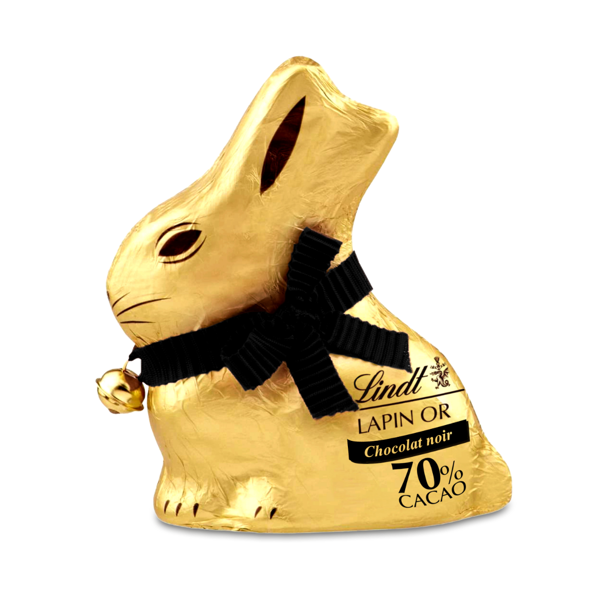 Je pense que le lapin de Pâques vegan que l’on trouve le plus facilement en magasin est le lapin de Pâques au chocolat noir de chez Lindt. C’est celui que j’achète tous les ans pour mon fils (et pour moi évidemment 😉 ), il est très facile à trouver en supermarché. Il existe en version classique, et en version 70% de cacao.